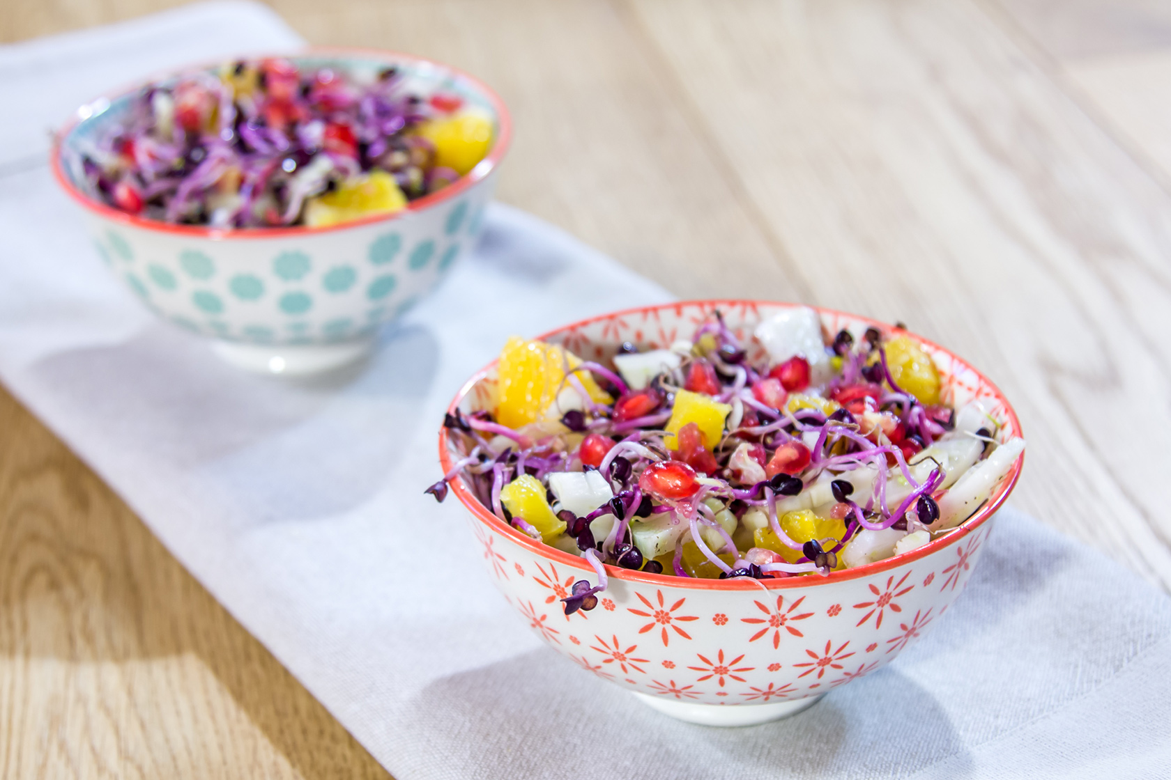 Insalata di arance, finocchi, melograno e germogli di ravanello